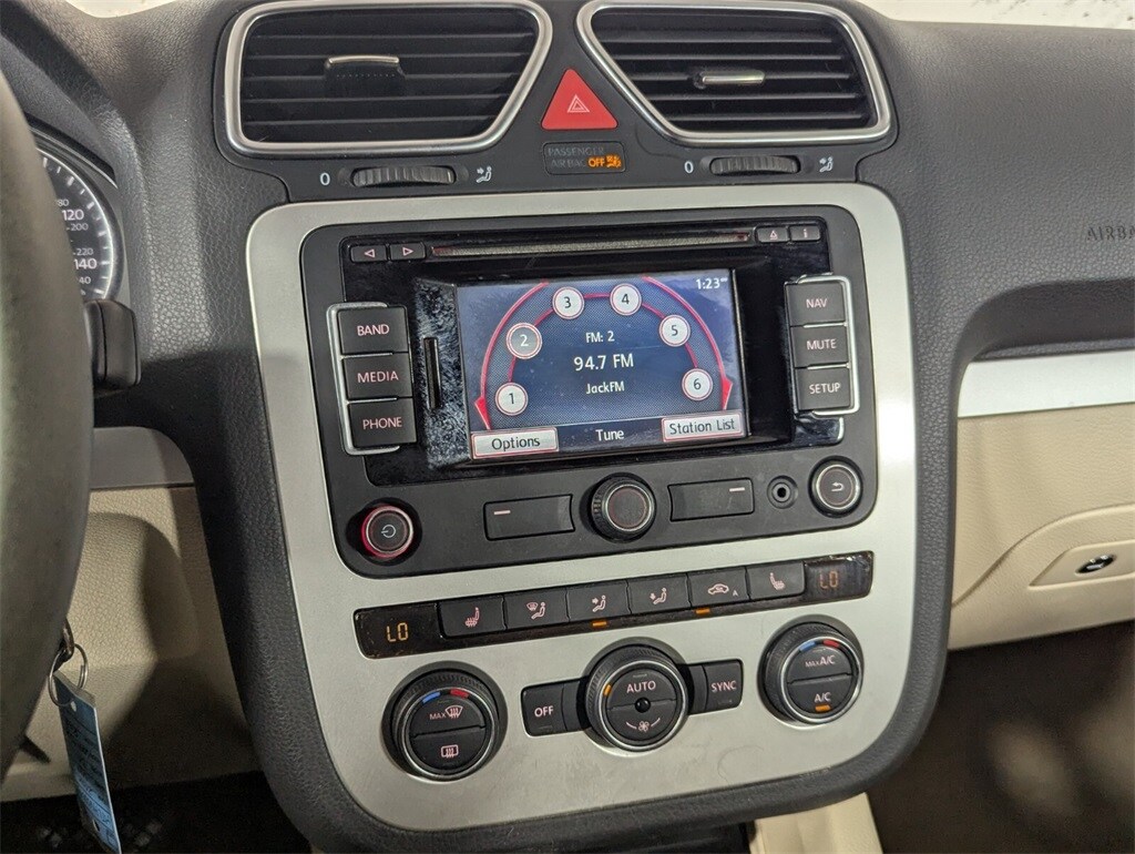Features: 17" Michigan Alloy Wheels, 4-Wheel Disc Brakes, 8 Speakers, ABS brakes, Air Conditioning, Alloy wheels, AM/FM radio: SiriusXM, Anti-whiplash front head restraints, Automatic temperature control, Brake assist, Bumpers: body-color, CD player, Convertible HardTop, Convertible roof lining, Convertible roof wind blocker, Driver door bin, Driver vanity mirror, Dual front impact airbags, Dual front side impact airbags, Electronic Stability Control, Emergency communication system: VW Car-Net, Four wheel independent suspension, Front anti-roll bar, Front Bucket Seats, Front Center Armrest, Front dual zone A/C, Front fog lights, Front reading lights, Glass rear window, Heated Front Seats, Heated front seats, Illuminated entry, Integrated roll-over protection, Leather Shift Knob, Leather steering wheel, Low tire pressure warning, Navigation System, Outside temperature display, Panic alarm, Passenger door bin, Passenger vanity mirror, Power convertible roof, Power door mirrors, Power driver seat, Power moonroof, Power passenger seat, Power steering, Power windows, Radio data system, Radio: RNS 315 Touchscreen Navigation System, Rear anti-roll bar, Rear seat center armrest, Rear window defroster, Remote keyless entry, Security system, Speed control, Speed-sensing steering, Steering wheel mounted audio controls, Tachometer, Telescoping steering wheel, Tilt steering wheel, Traction control, Trip computer, Turn signal indicator mirrors, V-Tex Leatherette Seating Surfaces, and Variably intermittent wipers.