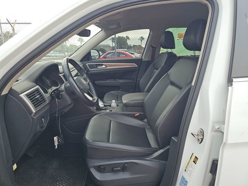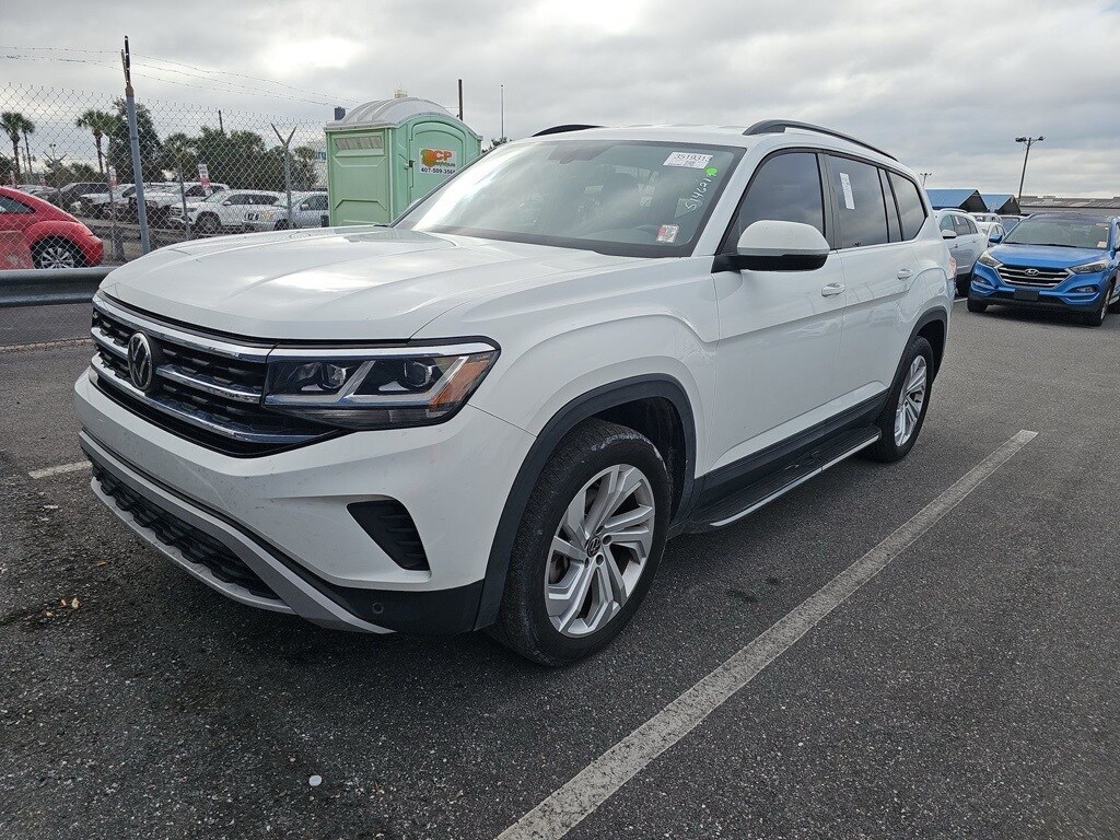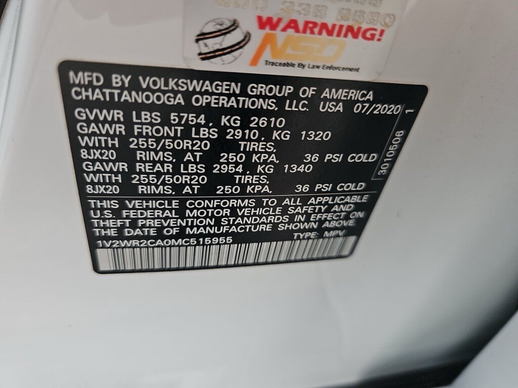 2021 Volkswagen Atlas 3.6L V6 SE w/Technology Beautifully finished in Pure White with Titan Black Premium Synthetic interior. 3.6L VR6 4D Sport Utility FWD 8-Speed Automatic with Tiptronic 3.60 Axle Ratio, 3rd row seats: split-bench, 4-Wheel Disc Brakes, 6 Speakers, ABS brakes, Air Conditioning, Alloy wheels, Auto-dimming Rear-View mirror, Automatic temperature control, Brake assist, Bumpers: body-color, Compass, Delay-off headlights, Driver door bin, Driver vanity mirror, Dual front impact airbags, Dual front side impact airbags, Electronic Stability Control, Emergency communication system: VW Car-Net services (capabilities require enrollment or subscription), Exterior Parking Camera Rear, Forward collision: FCW w/Autonomous Emergency Braking mitigation, Four wheel independent suspension, Frameless Self-Dimming Rearview Mirror, Front anti-roll bar, Front Bucket Seats, Front Center Armrest, Front dual zone A/C, Front fog lights, Front reading lights, Fully automatic headlights, Heated Comfort Front Bucket Seats, Heated door mirrors, Heated front seats, Heavy Duty Trunk Liner w/VW CarGo Blocks, Illuminated entry, Leather Shift Knob, Low tire pressure warning, Occupant sensing airbag, Outside temperature display, Overhead airbag, Overhead console, Panic alarm, Passenger door bin, Passenger vanity mirror, Perforated V-Tex Leatherette Seating Surfaces, Power door mirrors, Power driver seat, Power Liftgate, Power steering, Power windows, Privacy Cover, Radio data system, Rain sensing wipers, Rear air conditioning, Rear anti-roll bar, Rear reading lights, Rear seat center armrest, Rear window defroster, Rear window wiper, Remote keyless entry, Roof rack: rails only, Rubber Mats Kit - Bench Seat, Security system, Speed control, Speed-sensing steering, Split folding rear seat, Spoiler, Standard Suspension, Steering wheel mounted audio controls, Tachometer, Telescoping steering wheel, Tilt steering wheel, Towing Package, Traction control, Trip computer, Turn signal indicator mirrors, Variably intermittent wipers, Wheels: 20" 5-Spoke Silver Alloy. Clean CARFAX.